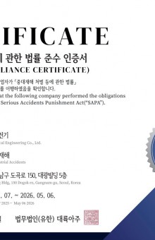 중대재해 처벌 등에 관한 법률 준수 인증서